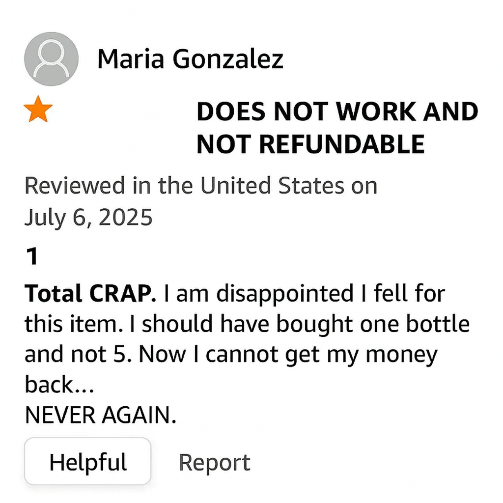 Our team uncovered numerous alarming complaints from individuals who ordered what they believed to be NerveCalm™ through third-party websites like Amazon, eBay, or other unauthorized online retailers. These customers reported receiving counterfeit bottles with altered or completely different ingredients — products that were not only ineffective but also carried potential health risks.